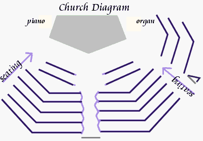 The church layout for the pew decorations will look like this: