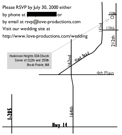 To RSVP, email Kristine and Eric or call the number in your inviation.