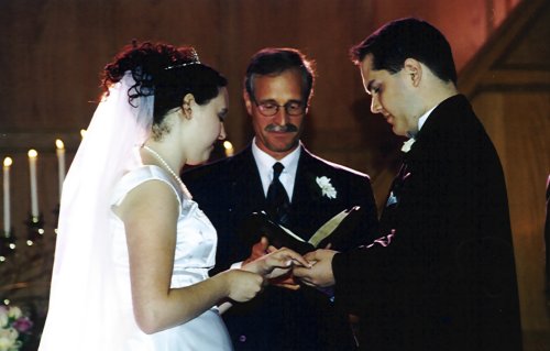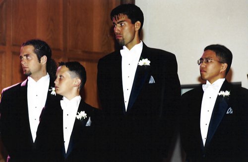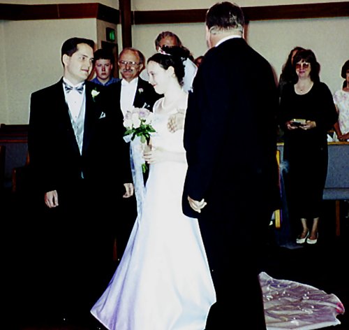 Matthew my brother was our junior escort and got to walk the Bible girl Katy and the Flower girl Caley up the aisle. They looked so cute :-) They were followed by me and my very handsome looking father, who got the hard job of giving away his oldest little girl.
