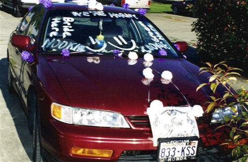 Our car was decorated by an assorted party of mischievious friends. We can't show you most of the pictures of the car for that reason :->
