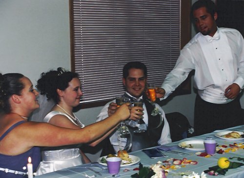 From our walk down the aisle, we headed outside for the receiving line. This was nice because we got to say hi to just about everybody who showed up for the wedding. Some I didn't know, but it was nice to meet them. Others were friends I hadn't seen for so long, and it was a wonderful chance to have such a great group of people all in one place :-)
